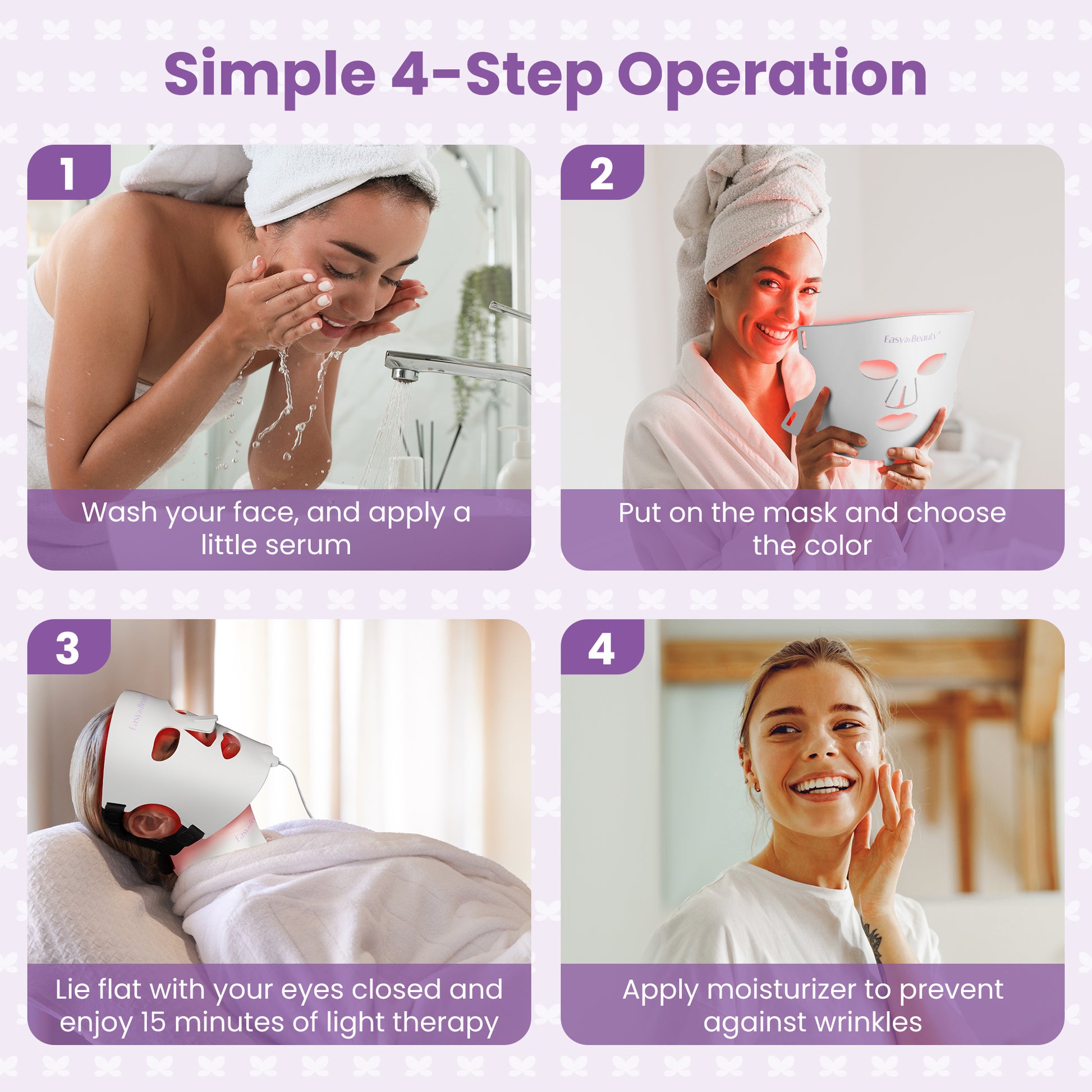 Boosts Skin Vitality and Appearance: The red light face mask promotes overall skin wellness, supporting elasticity and hydration. Its light therapy addresses various skincare needs, helping to refresh the complexion and improve the skinโs natural glow